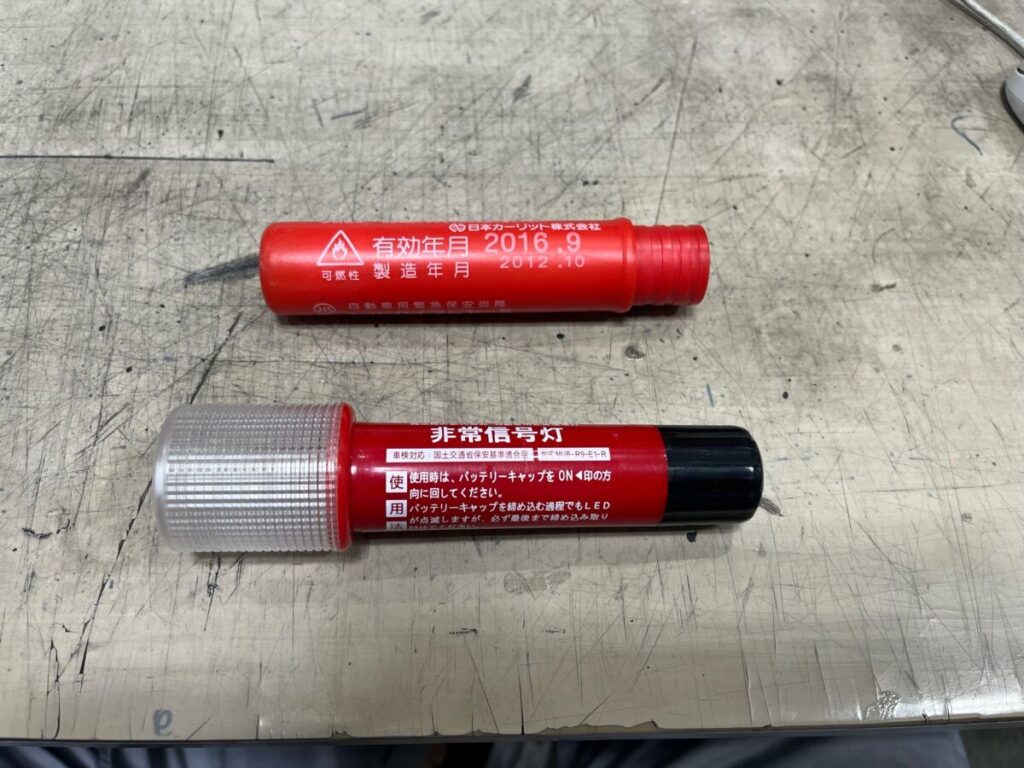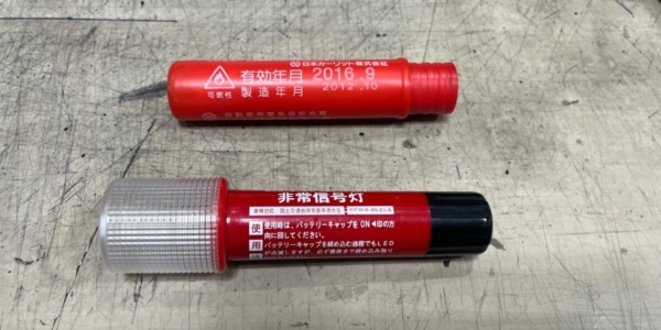 車検の際、発煙筒が積んであるか点検させて頂いています。